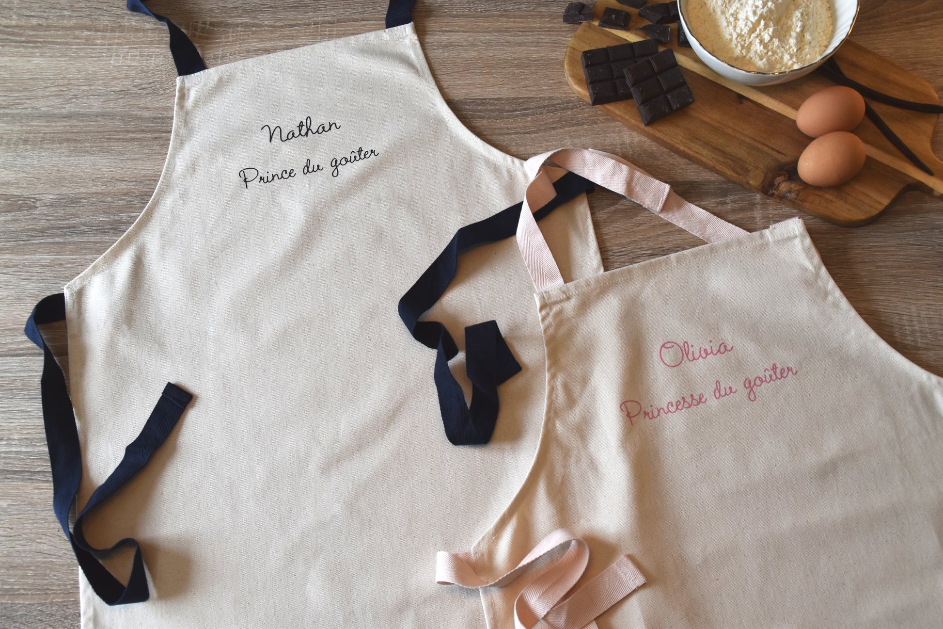 Un tablier entièrement personnalisable ( idées proposées ou création 100% sur mesure) c'est le cadeau idéal pour un petit chef en herbe.